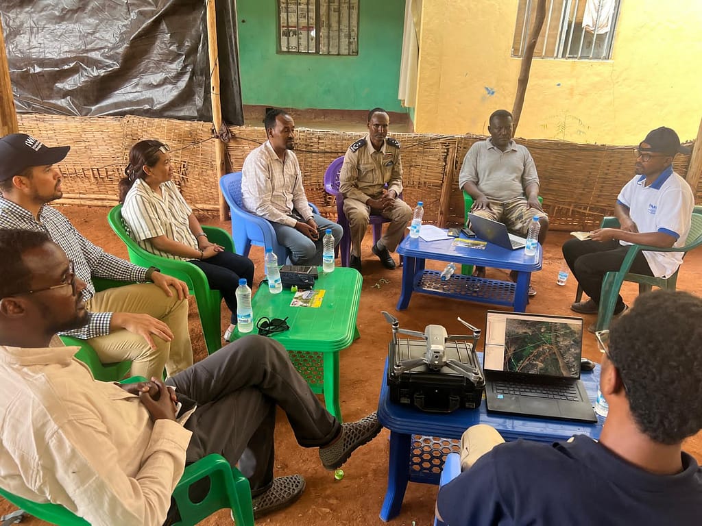 In June, a team from the International Water Management Institute (IWMI) and partner organizations arrived in Dolo Ado, a remote district in Ethiopia’s Somali Region. Their objective was to capture drone imagery and river sensor data to build a digital twin of the region’s hydrological system — a virtual model that simulates water flows, forecasts flood risks and supports emergency planning — partnering with the UN World Food Programme (WFP) and the Somali Regional Government to implement and advance our research objectives.