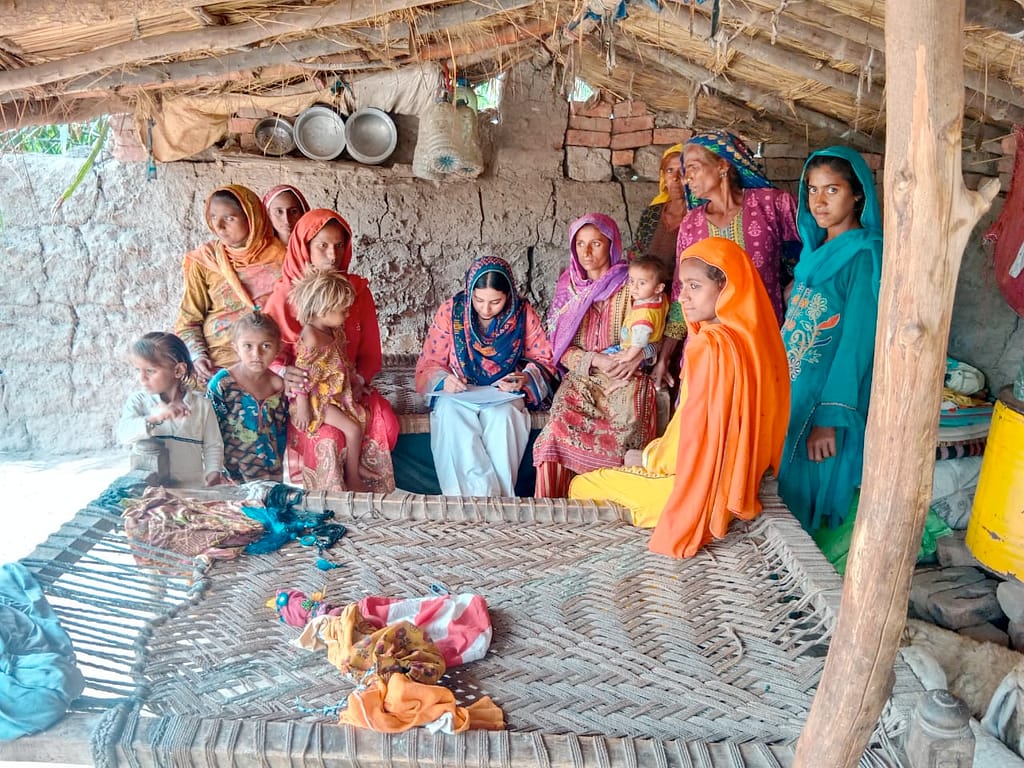 Focusing on climate migrants, our initial research step was pinpointing these communities. With limited data available, our team collaborated with a local NGO for a district-wide scoping visit to identify climate migrant “hot spots.” In October 2023, we deployed a rapid migrant identification survey, identifying key migration factors, livelihood impacts, early warning information, origins, and return plans. Around 500 climate migrants were identified, the majority displaced due to flood. From this preliminary scoping visit, we have identified areas across the district where displaced households are currently residing. This is one of the first attempts at systematically collecting disaggregated data specifically on disaster displaced communities in Pakistan at the district level.