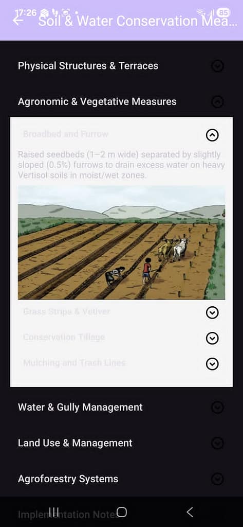 Beyond individual sites, the app supports broader planning efforts. It helps users understand unfamiliar landscapes, compare existing conservation practices with recommended options, and plan land restoration and climate-resilient interventions more systematically.