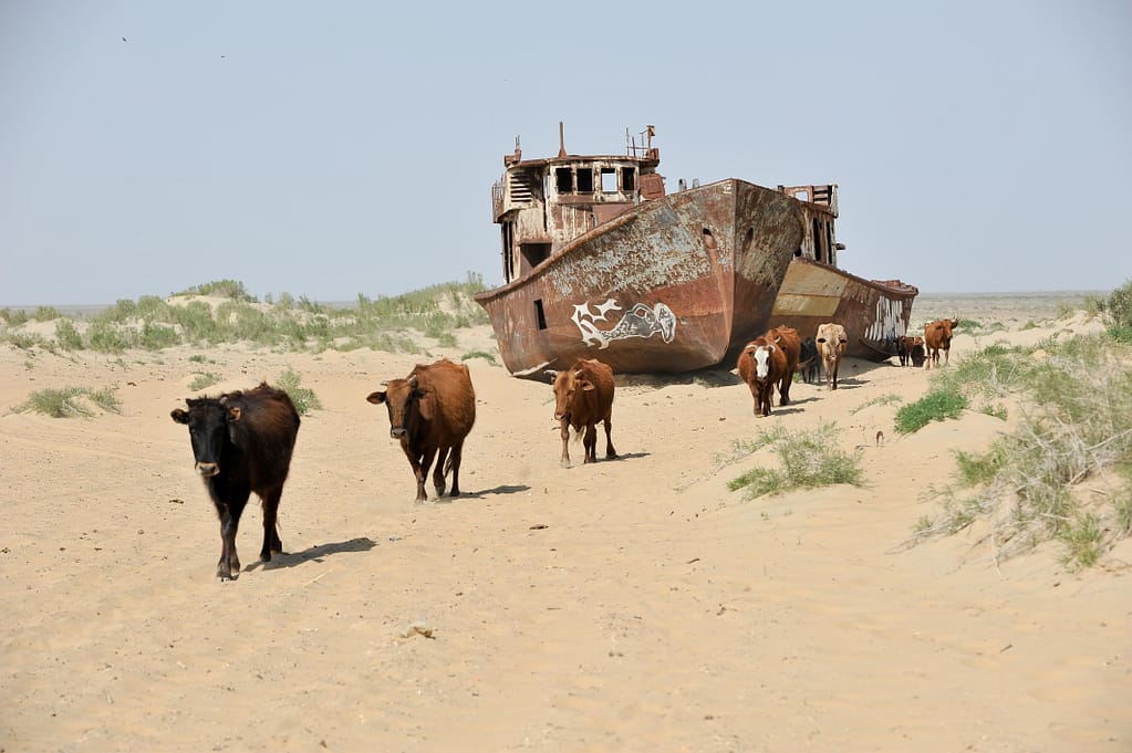 Miles from any shoreline, fishing trawlers lie stranded on a sun-scorched lakebed in Uzbekistan’s ship graveyard at Moynaq. These vessels, once vital to a thriving fishing industry, now rest on what was the Aral Sea floor – a stark reminder of ecological collapse. In the 1960s, when Soviet engineers diverted the Amu Darya and Syr Darya rivers to irrigate vast cotton fields in Uzbekistan and Kazakhstan, they set in motion a catastrophe that would shrink the world’s fourth-largest lake by over 90%. Local fishing communities collapsed as salinity increased, and species disappeared. The exposed seabed released dust storms carrying salts and contaminants across the region, leading to respiratory problems and other health issues among local populations.