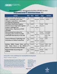 | 5 | ReWater MENA Project: More and Safer Water Reuse in the MENA Region: First Science-Policy Dialogue | Sep. 22st | 11:20 – 18:00 | Closed dialogue | AWC – FAO RNE – LAS |