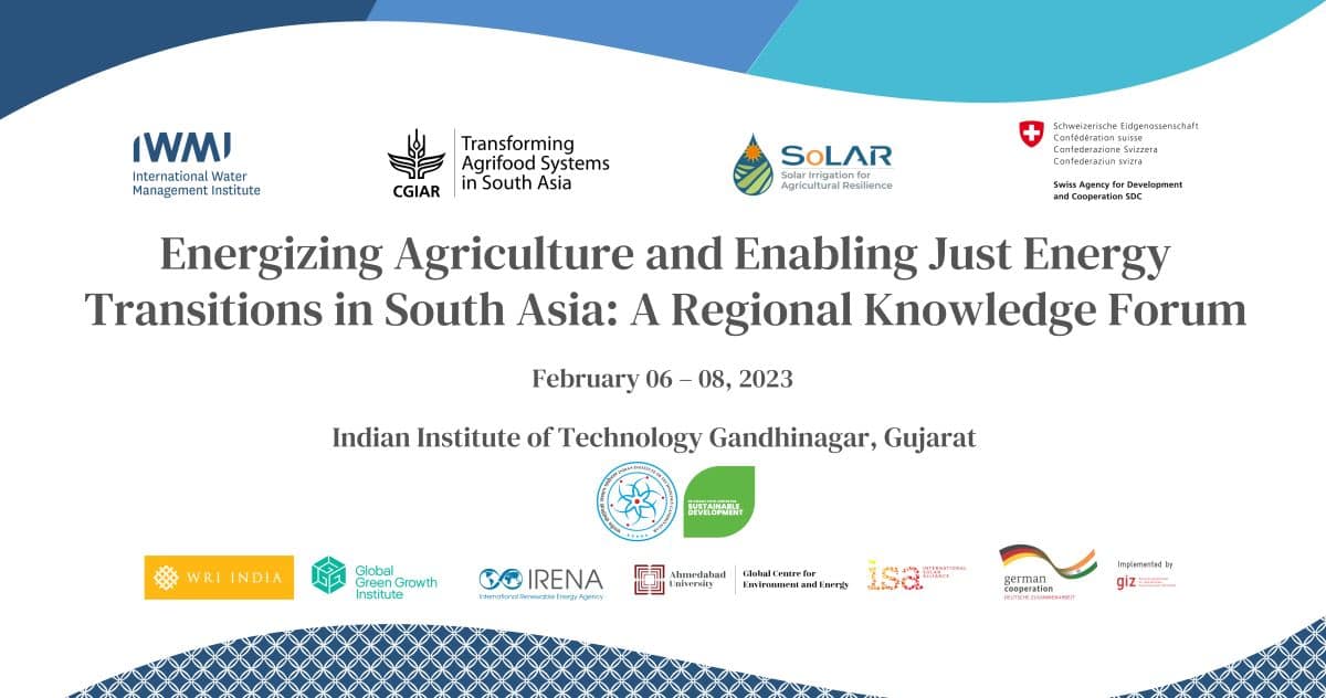 The International Water Management Institute (IWMI), with other partner organizations, is hosting a Regional Knowledge Forum on Energizing Agriculture and Enabling Just Energy Transitions in South Asia. This event is a part of IWMI’s project titled Solar Irrigation for Agricultural Resilience in South Asia (SoLAR), funded by the Swiss Agency for Development and Cooperation (SDC).