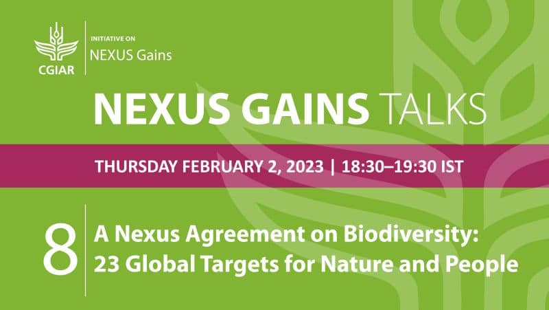 In late December 2022, 120 nations signed a global agreement on biodiversity (COP15). While conserving 30% of global lands and waters by 2030 has become the headline goal, it is only one of 23 targets that include important objectives – many of which are strongly dependent on CGIAR research and action. This seminar will briefly review the goals, helping to translate them for Nexus researchers, and discuss implications and opportunities for research and development activities. Speakers will share their experiences engaging with multiple research, indigenous and political actors in support of the global agreement, with the aim of improving CGIAR engagement in the Global Biodiversity Framework. They will also share the progress being made on the IPBES Nexus Assessment on Biodiversity, Food, Health, Water and Climate, and invite attendees to participate in the assessment and its review.