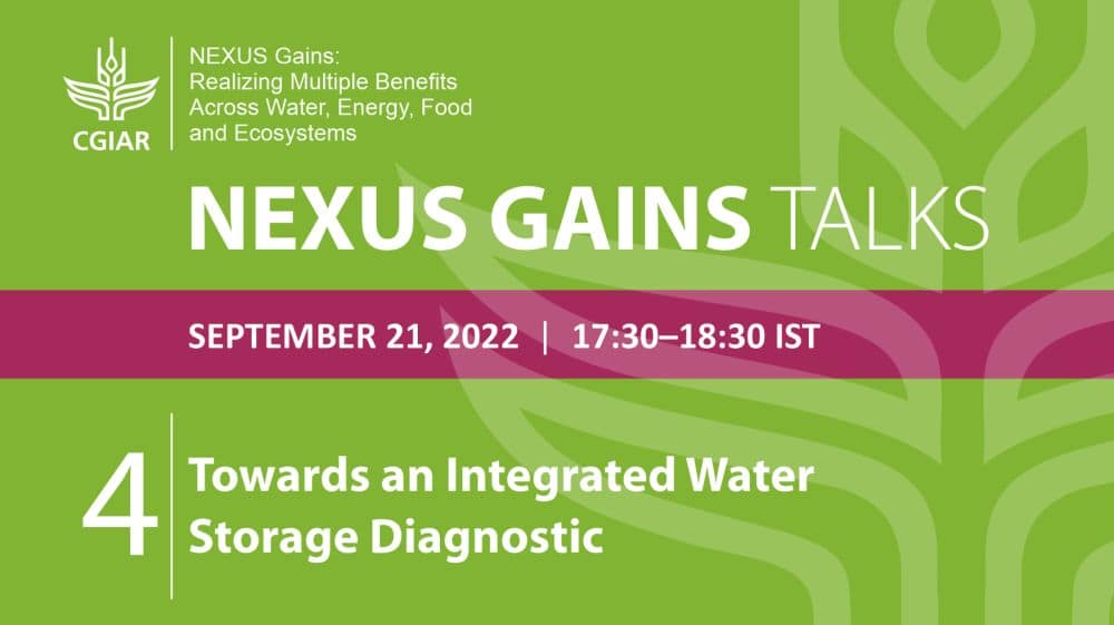 This NEXUS Gains Talk will discuss the challenges of developing an integrated diagnostic approach for understanding long-term water storage needs and opportunities. Water storage is growing in importance in the face of climate change, but future investments need to be guided by more rigorous approaches to integrating natural and built surface and sub-surface storage, as well as multi-sectoral needs in development and management.