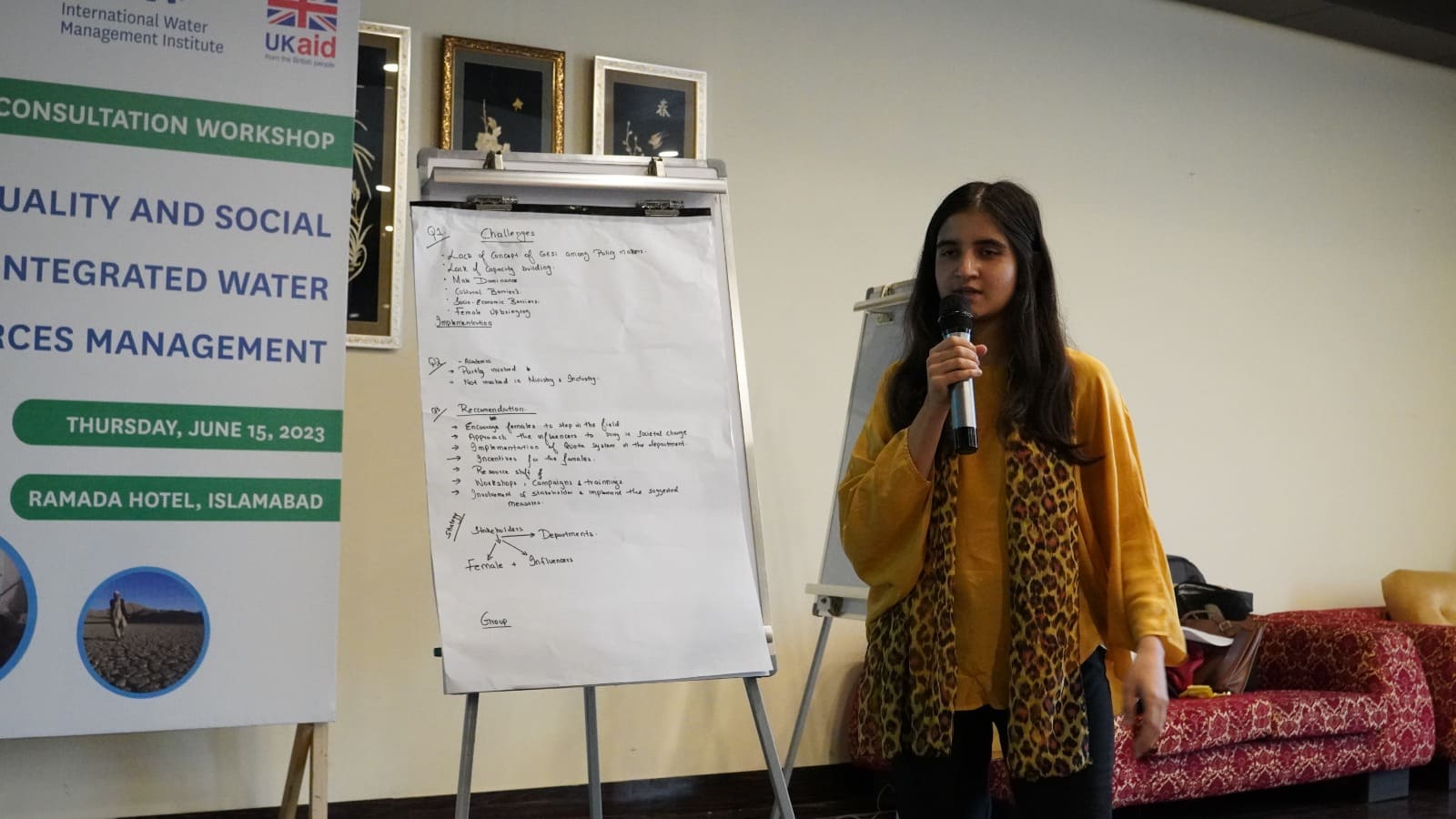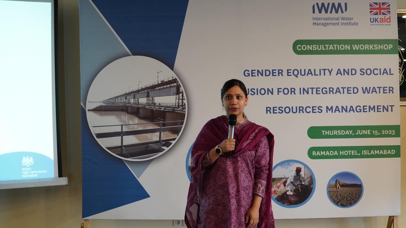 Sidra Khalid, Researcher – Gender and Social Inclusion, IWMI, gave a presentation on mainstreaming GESI in IWRM. According to her, “Gender analysis is essential for successful water programming. It allows us to understand social and power relations across all groups and promotes successful and sustainable water solutions. GESI is about addressing all gender and social groups to promote efficient use and equal access to resources and opportunities.”