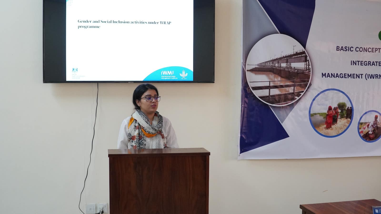 Hafsa Aeman, Senior Research Officer – Geoinformatics at IWMI, highlighted the importance of Gender Equality and Social Inclusion (GESI) in IWRM. She also informed the participants regarding IWMI’s approach under the WRAP Programme Component 1: CRS-IWaG for ensuring gender inclusion in all activities.