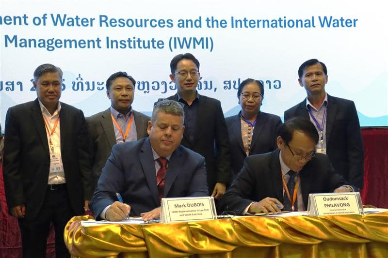 On April 3, 2025, the Department of Water Resources (DWR) of Lao People’s Democratic Republic (PDR) and the International Water Management Institute (IWMI) signed a memorandum of understanding (MoU) in Vientiane, Lao PDR. The agreement aims to enhance water resource management in Lao PDR, acknowledging the existing technical cooperation between IWMI and the DWR. It was signed by Mark Dubois, IWMI’s representative in Lao PDR and Southeast Asia, and Oudomsack Philavong, DWR director general.