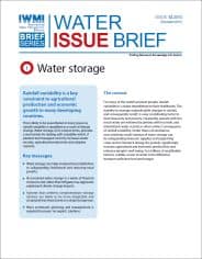 International Water Management Institute (IWMI). 2010. Water storage (Revised 2015). Colombo, Sri Lanka: International Water Management Institute (IWMI). 4p. (IWMI Water Issue Brief 12). [doi: 10.5337/2010.225]