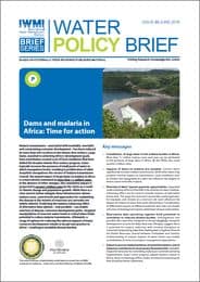 International Water Management Institute (IWMI). 2018. Dams and malaria in Africa: time for action. Colombo, Sri Lanka: International Water Management Institute (IWMI). 8p. (IWMI Water Policy Brief 40). [doi: 10.5337/2018.211]