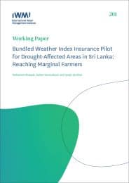 Aheeyar, M.; Samarakoon, K.; de Silva, S. 2021. Bundled weather index insurance pilot for drought-affected areas in Sri Lanka: reaching marginal farmers. Colombo, Sri Lanka: International Water Management Institute (IWMI). 35p. (IWMI Working Paper 201). [doi: https://doi.org/10.5337/2021.233]