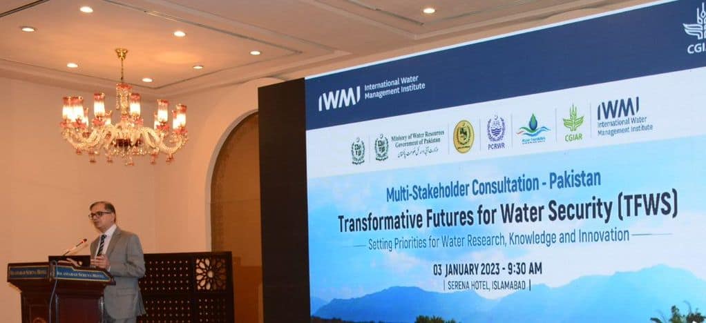 The workshop “Transformative Futures for Water Security (TFWS) – Setting priorities for water research, knowledge, and innovation” was organized by the International Water Management Institute (IWMI) in partnership with Pakistan Council of Research in Water Resources (PCRWR), Federal Flood Commission, Ministry of Water Resources, Federal Water Management Cell, Ministry of National Food Security & Research.