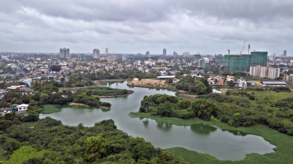 Constructing or restoring nature-based flood-prevention infrastructure such as wetlands, mangroves, and swales is 50% less expensive than traditional methods like concrete dykes. These natural solutions can provide equal or even better results in urban areas. Additionally, well-designed green infrastructure offers benefits beyond managing stormwater, including cooling, sequestering carbon dioxide, and enhancing tourism. “Wetlands have even more value than just flood mitigation,” shares Kasun Bandara, a civil engineer at SLLDC. He envisions the Colombo economy booming as a result of wetland eco-tourism.